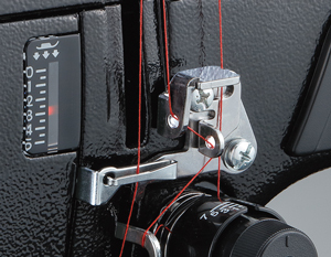 押さえの高さに連動して、糸案内の位置が移動します。布の厚みにあった上糸量が供給され、糸締まりのよいきれいな縫い目を形成します。