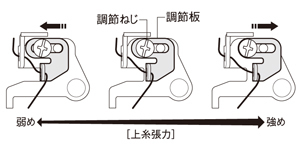 上糸張力補助調整で、上糸の張力設定を微細に変えることが可能です。
