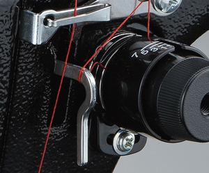 厚物専用の上糸張力を調整できるガイドです。上糸の張力が強くなるので下糸をしっかりと引き上げることができ、糸締まりが安定します。厚物や皮革を縫う際に縫い目の乱れを防ぐことができます。